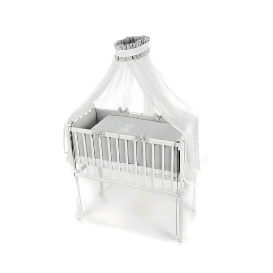 Babybett Beistellbett Grau – Herzen Muster mit Matratze Set